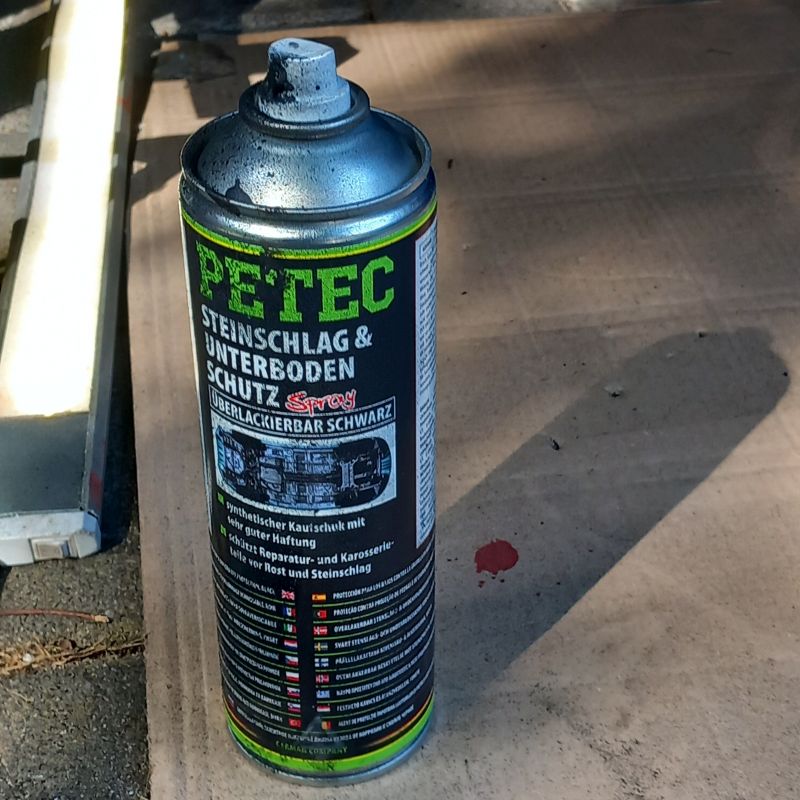 Hi, habe letztens den Unterboden einigermaßen entrostet und dann mit Rostschutzsprühlack bearbeitet und schließlich mit Petec Unterbodenschutz beaufschlagt. Hier ein paar Bilder: