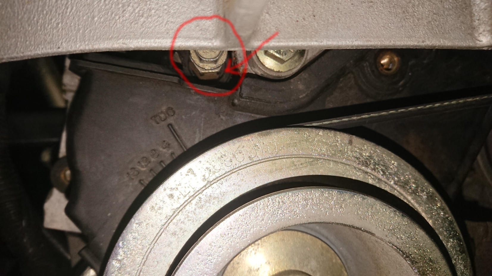 Die Schraube ist nicht neben der WaPu, das ist gleichzeitig die untere Halteschraube. Das ist quasi ein Reduzierstück (SW 13mm) mit einem weiteren Gewinde, wo dann die obere ZR-Abdeckung eingeklemmt wird (SW 10mm). Dateianhang: