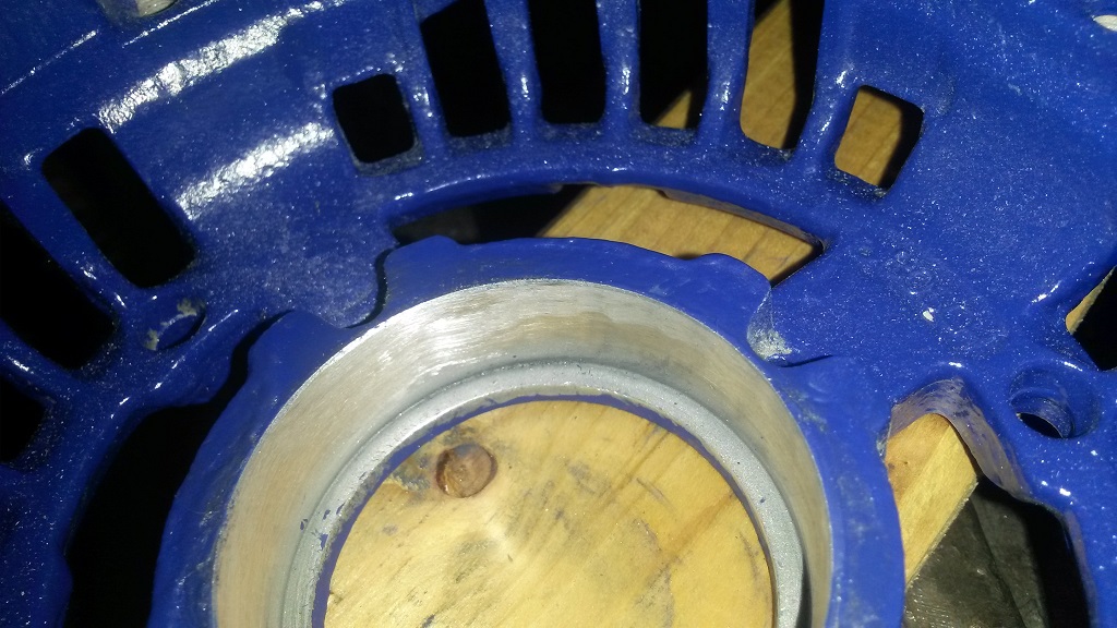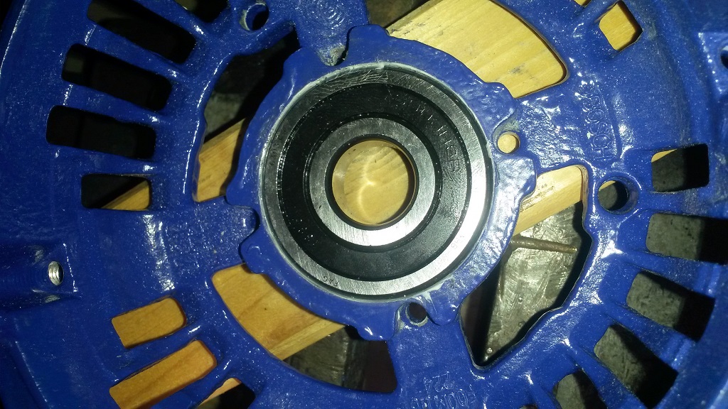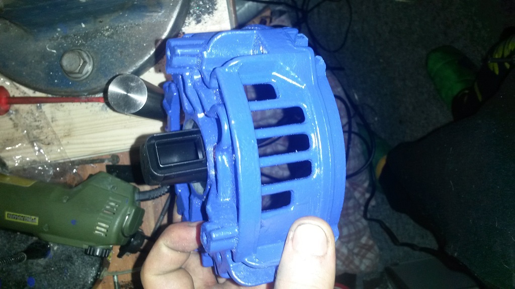 Gehäuse und Riemenscheibe wurden Gesandstrahlt. Gehäuse danach mit Brantho Korrux Ultramarineblau angemalt.
