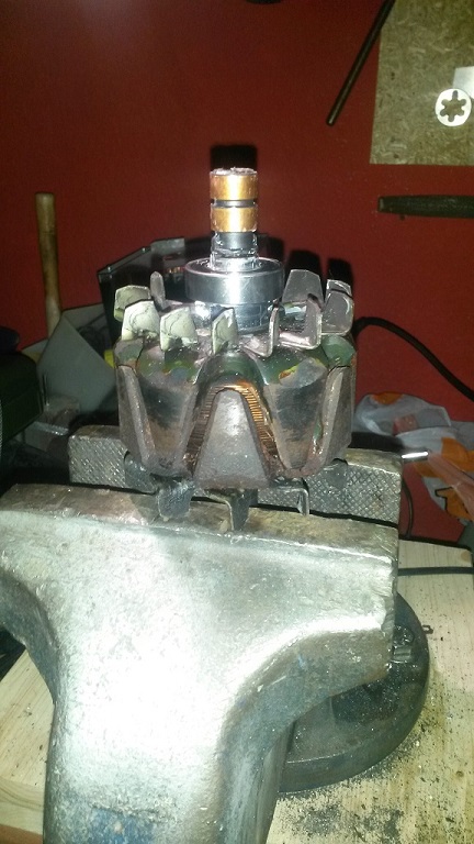 Lager auf die Schleifringseite schieben.(sollte ohne großen Kraftaufwand gehen. Zur Not hilft eine 17er Langnuss)