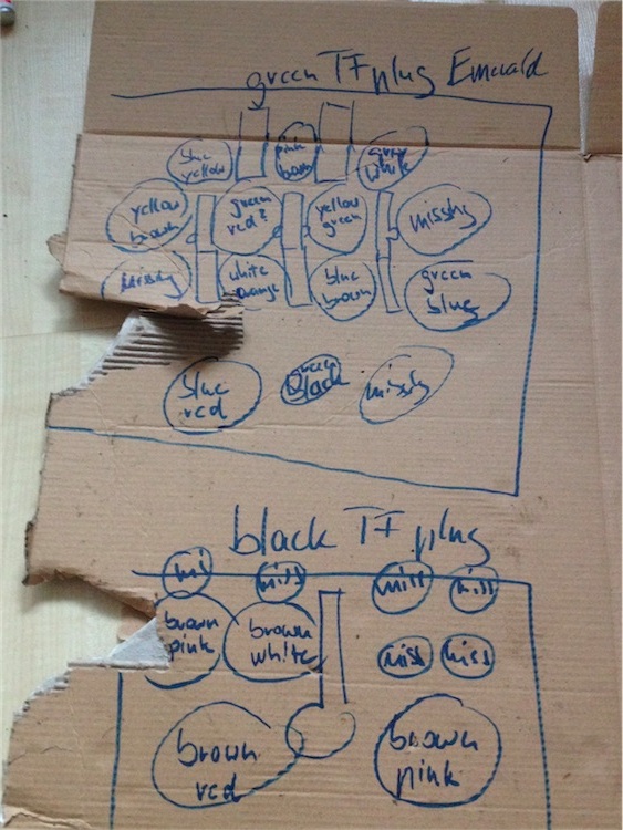Und ich schwöre , wenn das funzt, bin ich ne Woche betrunken ... Von den 3 Kisten von Franz , hahaa ... ( ich weiß , noch ist nich aller Tage Abend ! Ich weiß, ich weiß das, Franz ! ) Ja, ich war dabei die Kabelfarben vom Fahrzeugkabelbaum herauszufuddeln, um Sie letztendlich per HARAKIRI GOD MODE , miteinander "hardzuwirern" ( ups , neues Verb erfunden ! ) Ich hab das eben auch erst gelesen, Stig , du bist also schon durch die Hölle durch , na ich glaub Dir das ... das schafft man nur permanent betrunken ... Ich bin drauf und dran dem Postboten, den Mykel losgeschickt hat , von hier aus entgegenzulaufen , haha, ehrlich ... Ich war aber heute morgen schon fleissig , bin der Emerald Kabelage an den Kragen : Dateianhang: