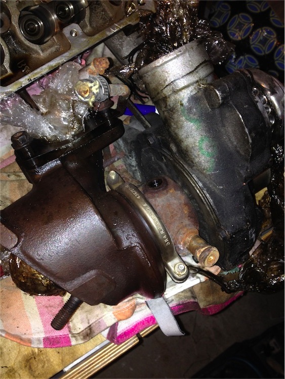 Ich habe mich in letzter Zeit mt allerlei Unsinn beschäftigt ( wie immer ) , haha und muss ich jetzt erst mal wieder reindenken. Ich werde mit Mykel die Turbo´s tauschen, damit der BlueT ein Teilegutachten bekommt und somit eine Bauvorlage für alle diejenigen wird, die das Nachbauen wollen. Und keinen Bock haben, Ärger mit dem Tüv zu kriegen ... Somit tun sich bei mir jetzt andere Universen der Ahnungslosigkeit auf die ne ein Mensch zuvor betreten hat ... kleiner Wink auf die Tatsache das Leonard Nimoy vor kurzem gestorben ist und ich als Fan Ihm hier jetzt noch mal meine Aufwartung mache : "Live long and prosper" als Materie, im bald doch vergehenden Universum ( nur noch 5 Mrd. Jahre , dann is endlich Schluss mit lustig ... ) Sorry , ich schweife ab ! Dadurch das mir Mykel auch die strömungstechnisch zweifelhafte BBR 90 Grad Turbo Downpipe mitgibt, vereinfacht sich der Auspuffbau wensentlich. Ich bekomme also auch nen Turbo mit Öl und Wasseranschluss und müsste dan erst mal sehen wo UND WIE ich den Abgriff für das Wasser mache ... ich glaub da auch irgenwo irgendwas drüber gelesen habe und Markus/ Rheinkiter hatte mir darüber auch schon mal was erzählt , ist nur schon ein bisschen her ... Abgriff im Kaltvorlauf und Rückführung direkt in den Zulauf vorn zum Kühler ... Shit , ich hatte einen Wasserabgriff für den Turbo in einer Ausführung in Alu irgendwo schon mal gesehen , wenn ich blos wüßte wo ...  Sowas gabs in Plastik und wurde dann als Aluvariante gebaut, weil haltbarer ... ACH  , sind die Dinger in dem Blauen verbaut  , Mykel , justalmente wo man mal hier direkt ins Internet denkt , ähem ... die braucht Ihr doch dann auch nicht mehr ... ähem ... BITTE; BITTE Ein paar Bilder wie das da beim BlueT gelöst worden ist , wären natürlich auch Klasse ! Ih wär ja nur zu gern am nächsten Sonntag beim Schrauben mit dabei in Schwalbach ! Somit gehts hier weiter , obwohl ich wohl zugeben muss , das ich es aus finanziellen Gründen es nicht schaffen werde , mit dem Teil nach England zu fahren. Das Konfirmationsloch ist zu groß , das schaff ich nur, wenn ein Wunder geschieht und das erinnert mich sofort an meinen Lieblingswitz , das beschreibt hier ziemlich genau , meine Turbogeschichte : Dateianhang: