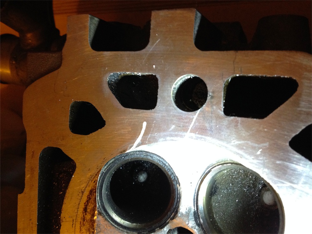 The very least you should do when fitting a VVC head is to remove the recession ledges around the inlet and exhaust seat inserts in the combustion chamber and smooth/ease the ledges and ridges around the inserts in the valve throats as shown in the photos below.. von http://www.dvapower.com/Bilder sind auch da ... "auslitern" ? der Begriff sagt mir bis dato nix ... und schwupps kurz gegoogelt , nee auslitern mach ich nicht ... und da man very least mit "mindestens" übersetzen darf, hab ich da den Dremel als erstes reingehalten. Diese Porting "Anleitung " hat ja man auch nich irgendwer geschrieben .... und der Hr, Andrews scheint ja zu wissen was geht ... und ich merk schon damit ich das nicht vollends verkacke, das ich mir RICHTIG Zeit dafür nehmen muss ... Mal sehen was draus wird ...
