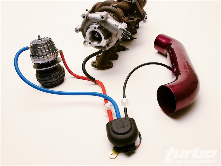 Ist wieder mal alles gaaanz anders als du denkst, mein Caddemann! Die Druckdose am Turbo steuert (über das Magnetventil im Foto) das Wastegate der Abgasturbine. Damit wird die Aufladeleistung des Turbos gesteuert, letztlich also der Bumms, den das Teil hat. Geschaltet wird das Magnetventil dann vom Emerald. Ein Schubumluftventil (blow off valve) hat der Turbo vom Blue-T nicht, das muss da extern gelöst werden, so dass die Stauluft vor der Drosselklappe bei Schubbetrieb (Klappe zu) wieder in den Luftfilterschlauch geleitet wird. Oder eben in die Umgebungsluft, was zwar schön zischt, aber leider verboten ist.  Kann man bei der 52-er Drosselklappe z.B. den Anschluss für die Kurbelgehäuseentlüftung für nehmen, denn die kannst du dort ja eh nicht dranhängen. Da dann ein entsprechendes Ventil dran, dass bei Unterdruck im Plenum aufmacht, das läuft über einen Abzweig vom Benzindruckregler. So sieht das aufgeschnitten aus: Dateianhang: