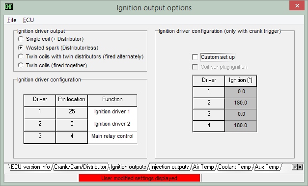 Hi Cadde, As you have a K3 the injectors can be connected either way. I would connect the injectors individually. The injector drivers switch in sequence so it is normal to wire according to firing order in case you do run fully sequential injection, e.g. with the firing order being 1-3-4-2 the injectors would be connected as follows:- Injector driver 1, ECU pin 24, to injector 1 Injector driver 2, ECU pin 23, to injector 3 Injector driver 3, ECU pin 26, to injector 4 Injector driver 4, ECU pin 1, to injector 2 The ignition coil for cylinders 1&4 should be connected to ECU pin 25. The ignition coil for cylinders 2&3 should be connected to ECU pin 5. If the engine does not run then you need to confirm that the ECU is configured to suit your engine set up. Best regards, Karl Na, dann geh ich mal raus ! LOL !