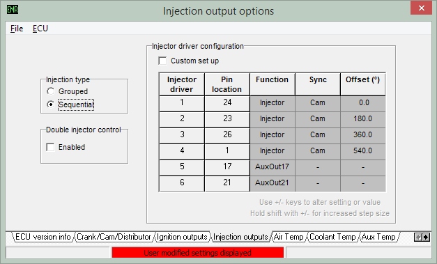 Ich würde die Injektoren in jedem Fall separat ansteuern, man kann die ja zunächst mal so feuern lassen, wie das jetzt eingestellt ist, später dann feintunen, um bestmögliche Leistungswerte zu erzielen.