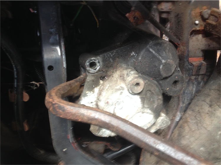 Der Hilfsrahmen hat ne Delle davongetragen, naja, nix worüber man sich aufregen muss ... Dafür hab ich jetzt vollen Zugang zur Kupplung Dateianhang: