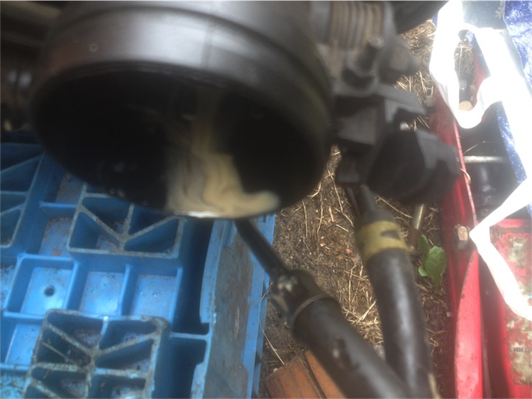 Im Enddeffekt machen wir grad doch alles anders , aber wir machen ... Ich hatte tatsächlich schon die Schilder für 3 tage ab und hab auch gleich eine von diesen gelben "Schrottweg" Sdhilderchen im Sichtfeld von den Uddels auf die Windschutzscheibe geklebt bekommen ... da sind Sie echt auf zack , da kann man nicht meckern ... Also erste Frage , wie kriegt man das runter, ohne das ich mir mit ner Anarchomethode die Scheibe zerkratze ... Auto bleibt hier , Thorsten kommt hoch , ich gebe dem Bock ne letzte Chance , wir werden das gemeinsam nochmal hier reparieren, da ich tatsächlich irgendwie Laufbuchsenüberstand hab "messen", besser erfühlen können ... verifizieren werden wir das am WE ... Kopf wird die Tage geskimmt, dann sollte das doch dicht zu kriegen sein ... Die Suppe lief aber auch überall hin , kein Wunder das der nicht mehr wollte : Dateianhang:
