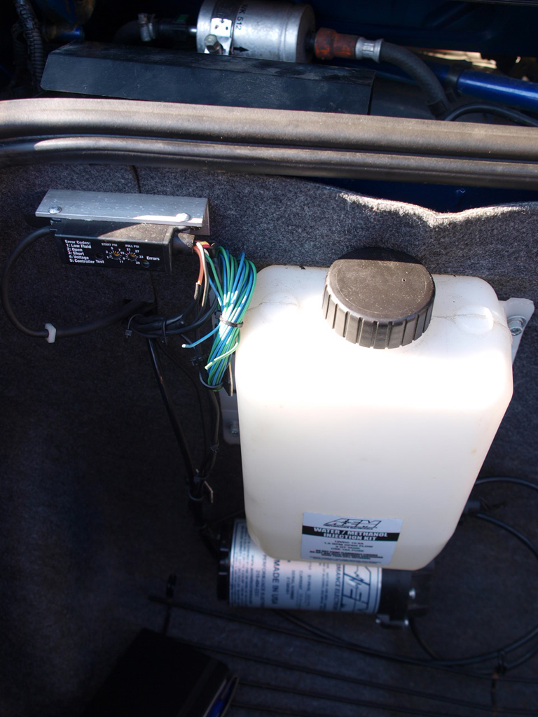 Stammt aus nem Audi S4 mit 2,7 Liter Biturbo.  Es gibt aber auch noch den originalen Ladedruckregler vom Rover 75 Turbo, der an den Garrett Lader passen sollte. Und der versteht sich sicher mit dem MEMS3. Ansonsten nutzt der K-Serien Turbo die gleichen Sensoren wie der MPi - mit einer Ausnahme: Wegen der veränderten Druck-Charakteristik ist ein anderer MAP-Sensor verbaut, der aber gehäusegleich ist. Ich hab das noch nicht nachgeschaut, welcher da im Turbo-TF drin ist, aber das wird unproblematisch. Ansonsten haben wir noch andere Einspritzdüsen (die Beigen aus dem alten VVC, so wie das aussieht) und einen anderen Benzindruckregler (ohne Uhr, steht Weber drauf). Von daher sehe ich auch wenig Probleme, was die Motorsteuerung angeht. Was hier nicht bekannt ist wird Mark klären können, denke ich. Wasser-Methanol-EinspritzungEbenfalls nachträglich verbaut wurde eine Wasser-Methanol Einspritzanlage vor der Drosselklappe: Dateianhang: