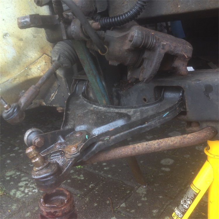 Moin Letzten Samstag war ich bei Jan zu Gast , um den kaputten Radträger zu tauschen ... Bei allerfeinstem stundenlangem Landregen sollt ich ein weiteres Waterloo erleben ... Ich war mir nicht ganz sicher , ob das vorn links oder rechts klappert und hab Jan ne Testfahrt machen lassen ... Wir waren uns einig , vorne rechts wird das Teil gewechselt ... Und ein ist mal sicher : ohne Jan sien Werkzeugpark , stünd ich immer noch in niedersachsener Outback im Regen ... Schlagschrauber und Abzieher für die , shit ich komm auf den Namen nicht , err , Knucles ??? Ihr wisst schon , die die nie ohne rohe Gewalt da raus kommen wollen ... Egal , hat insgesamt nur 5 Stunden gedauert , mich einwandfrei nur 10 Jahre meines Lebens gekostet ... Dateianhang:
