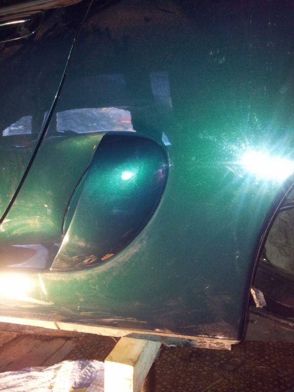 Wie man sieht hab ich noch keine Räder dran, Auto ist noch zerlegt. Um mich mal wieder was zu motivieren hatte ich die Scoops jetzt mal lackieren lassen ( 50 Euro) und sie rangeklebt (Würth Klebt+Dicht). Wenn das Auto mal endlich out of the Garage ist gibt's noch Bilder...