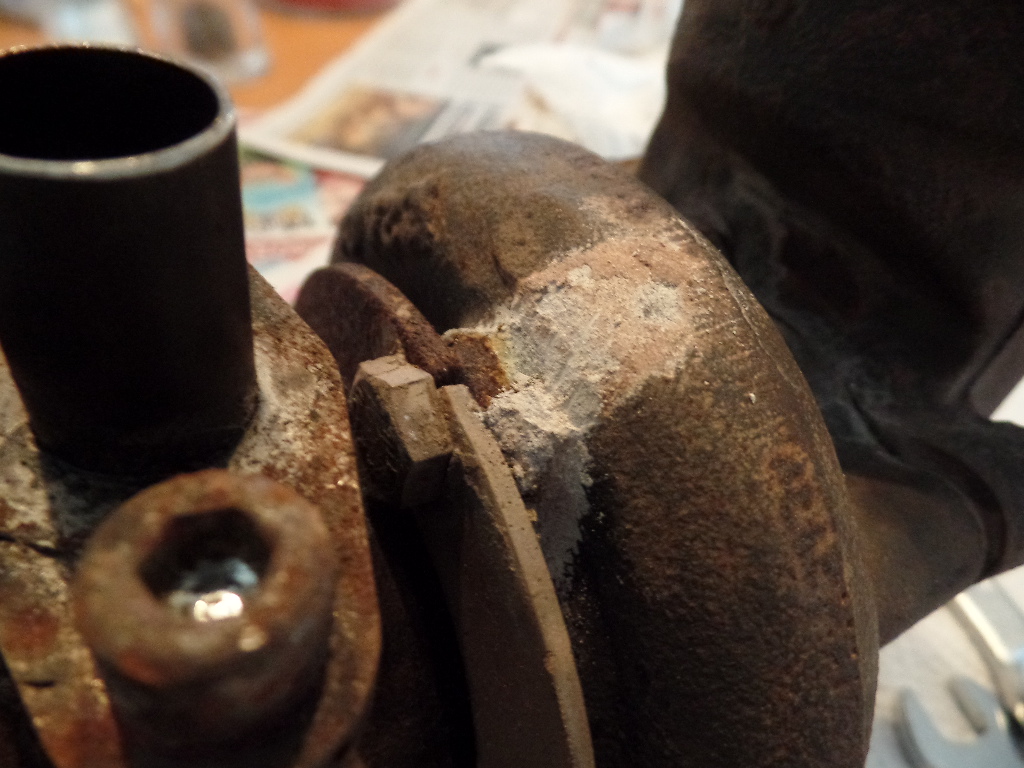Ich hab heute mal versucht, etwas mehr Licht ins Dunkel des eigentlichen Laders zu bringen. Aber so sehr ich mich auch bemüht habe, auf den Tisch, ohne Schraubstock, kriege ich die Schrauben nicht auf, die den Kompressor an der Abgasturbine halten. Eine Neuigkeit ist aber, dass im Kühlwasseranschluss ziemlich viel Öl war. Könnte von ner kaputten Kopfdichtung stammen, könnte aber auch sein, dass da irgendeine Dichtung im Lader selbst nicht dicht hält. Nun, wir werden sehen. Ansonsten sind mir nur ein paar Wasserflecken auf der Unterseite aufgefallen und dass die Welle von der Steuerklappe der Turbine ca. einen Dreiviertel Millimeter Axialspiel hat und ziemlich quietscht, wann man sie dreht. Frage an die Turbokenner hier: ist das normal (weil man wegen der Temperatur da ja nix schmieren kann) oder können wir das Ding wegschmeißen? Hier noch ein paar Fotos vom ausgebauten Turbo: Dateianhang: