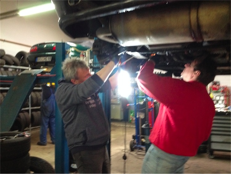 Die Jungs haben da richtig dran zu tun gehabt ! Das geht definitiv nicht Allein ! Und als Jan mir sagte , das es diese Stabis auch noch für hinten gibt ... öh , nee ! Da bleiben die Alten drin ! Drauf geschiXXXX .... Hier " da Man ! " ( der hat keine zwei linken Hände !! )  ( eins der wenigen verwackelten, Sorry , sind immer Aktionphotos !  ) : Dateianhang: