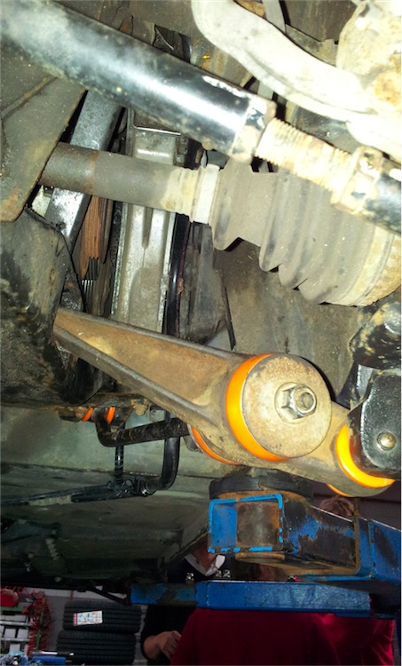 Bei mir war "Tag der ausgeschlagenen Buchse" , deshalb hab ich mir so nen Floflex Polybuchsensatz zufliegen lassen, auf Anraten vom Jan. Nach 16 Jahren "Hamburger Bergrennen" waren die völlig fertig und schrien förmlich danach , von diesen orangenen erstetzt zu werden. Die Farbe is allerdings eklig ... wird aber hoffentlich dem Mann vom TÜV gnädig stimmen. Als ob man da ne Orange reingedrückt hätte ... IHHHH !  Dateianhang: