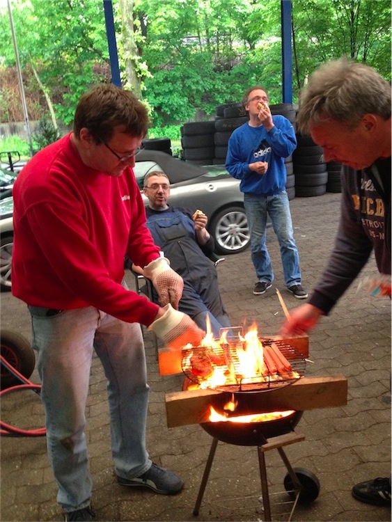 Und während ich mir mit den Jungs hinten mit den Buchsen "reinraus" einen angekämpft haben , hat der Franz mal eben den jungs die Spur neu gezirkelt und sein enzyklopädisches Wissen bereitgestellt ... oder ? geh ich mal von aus ! ( Konnt ich ja nich mitkriegen , war ja hinten !  ) Es wurde einfach Allen geholfen , wil ich damit sagen , ich hab natürlich wieder mal am Meisten gelernt ! Ätsch !  ...Is ja man auch einfach , wenn man doof is wie´n Schlauch ... hahaha ... Und dann hat der Franz mir seinen ultimativen Vertrauensbeweis gezeigt und mich den Grill anfackeln lassen ! Ein Kickback in meine Lehrzeit , wo Sie damals mit Azethylenbuddeln / Sauerstoff Mischungen ganze Häuser eigeebnet hatten ... die AZE Buddeln heiß werdend, in die Elbe geworfen und es später Fischstäbchen regnen lassen ! Danke Franz ! die Konstruktion Grill , is von mir , sieht man , oder ?  WIE , DER MAXIMALE DATEIANHANG BETRÄGT NUR 10 Stck ! WAT DAT DENN ? IS DER SERVER ei COMMODORE C64 ? ... ENDE PART ONE !