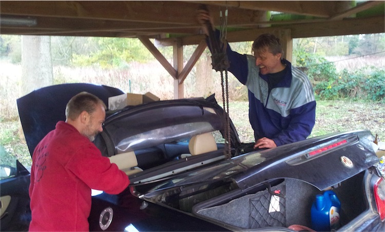 Der Ablauf erinnert mich daran, daß wir mal an meinem damaligen Käfer die Kupplungsdruckplatte ausgetauscht haben, weil einer der Ausrückhebel abgebrochen war. Ich konnte zwar (nach Anfahren im ersten Gang mit dem Anlasser) auch ohne Kupplung schalten, weil mein erstes Auto 1968 ein nicht synchronisierter Lloyd 600 war, aber es war halt lästig. Also einen Flaschenzug gekauft, der laut Aufdruck 1.000 kg tragen sollte - in anderen Läden war nur bis 250 kg ausgezeichnet  - und in den Wellblechcarport gefahren, dessen Dach auf einer Eisenbahnschiene lag. Daran haben wir den Flaschenzug mit einem herumliegenden etwa 8 mm dicken Stück Metall aufgehängt, das Käferheck befestigt, das Seil an die Stoßstange des Opel Rekord meines Helfers und ein Stück weggefahren, bis der Käfer hoch genug hing. Der Wechsel der Druckplatte ging dann zügig voran, und wir waren recht fröhlich, bis wir den Wagen wieder auf seine Räder gestellt hatten und den Flaschenzug abbauen wollten. Da merkten wir nämlich, daß das alles tragende Stück Metall kein dicker Draht, sondern ein Stück Benzinleitung, also ein Messingröhrchen war. Man nennt so etwas wohl auch einen Bodenseeritt.