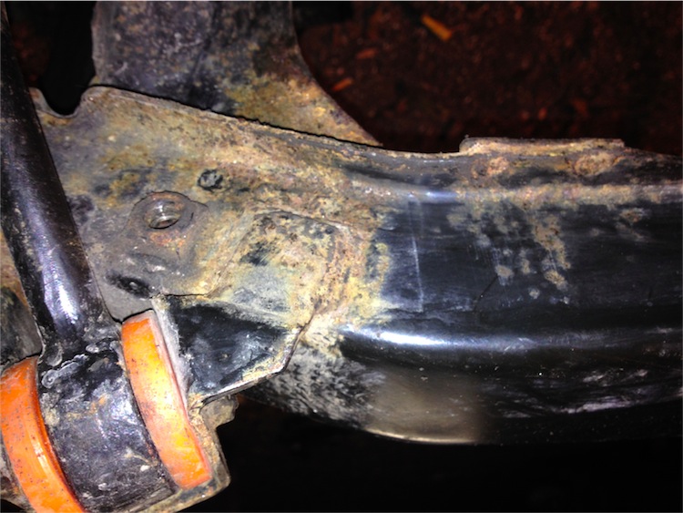 oder auch nich ... konnt nich genug kriegen, Frau hat Freundinnen eingeladen. " willst Du mit uns Essen ? " " AUF GAR KEINEN FALL " schoss es mir bis zu den Stimmbändern, um noch die Kurve zu kriegen ... " nein , Danke , ich hab draussen glaub ich noch was vergessen ..." Ich somit wieder raus und war für Stunden nich mehr gesehen ... 1. mein Rahmen sieht gar nicht so beschissen aus , um nicht zu sagen , der hat sich für 16 Jahre erstaunlichst gut gehalten. Ich hab mal das ÖL-Sand-Gemisch abgewischt und zum Vorschein kam echt nix, vor dem man Angst haben muss : der hintere Teil hat original gar nix  , innen ein paar kleinere Stellen. Ich glaub die ÖLDreckMelange hat einen sehr schön schützende Eigenschaften. Dateianhang: