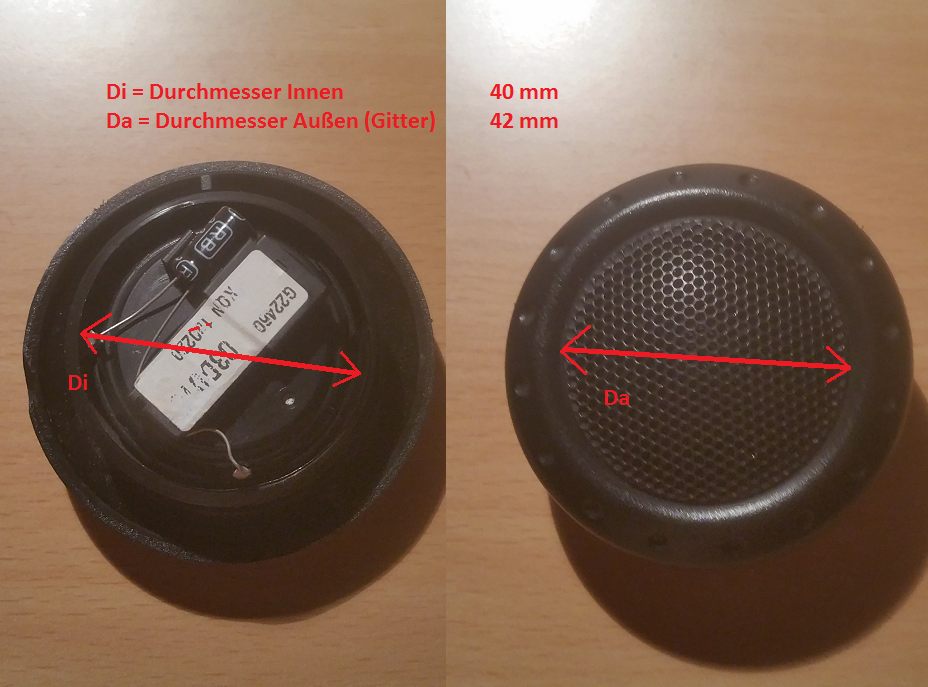 Die Hochtöner passen exakt in die vorhandenen Löcher. Allerdings ist der Rand der Hochtöner etwas schmaler, als der der originalen Hochtöner. Siehe Bild.