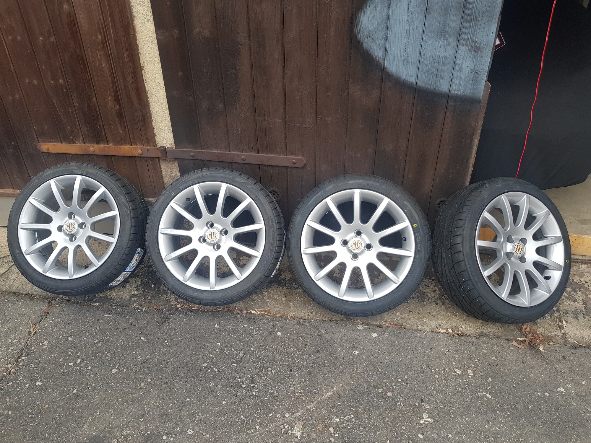 Auch haben sie beim Aufziehen der Reifen mitgedacht, und sowohl das asymetrische Profil "Outside" der Reifen beachtet als auch die beiden Felgen mit den meisten Wuchtgewichten mit den breiteren Reifen aufgezogen, damit die mit weniger Unwucht auf der Vorderachse sind. Ansonsten haben die Reifen das übliche Problem einer Pulverbeschichtung. Eine Orangenhaut. Lässt sich wohl nicht vermeiden und ist der Preis für hohe Standfestigkeit und leichte Reinigung der Felgen. Eine Sache regt mich aber doch auf die aber nichts mit dem Anbieter zu tun hat. Die bei Ebay angebotenen Aftermarket Trophy Nabenkappen von MGMania passen nicht auf die Trophy Felgen. Jedenfalls nicht ohne rohe Gewalt. Ich frage mich Frage ob die überhaupt dann wieder abgehen oder die Nasen dann schnell brechen... Ich werde mir mit englischen MG Aufklebern helfen müssen und den original Kappen verwenden. Außerdem habe ich eine meiner Ford / Aftermarket Radmuttern vom Mk1 abgemacht und werde versuchen den gleichen Satz wieder zu bekommen. Grüße aus Chemnitz