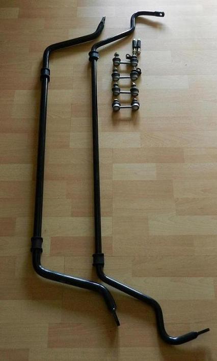 Na klar spreche ich von den Stabi(lisatoren)'s Die TF und F Stabi's sind zwar etwas anderes geformt, ich denke/hoffe aber irgendwie passt es schon... Die Teile sind von Eibach, haben vorne 25mm und hinten 20mm. Es handelt sich ziemlich sicher um die Stabi's aus dem 85th TF! Außerdem habe ich noch passende Koppelstangen und Buchsen dabei gehabt.