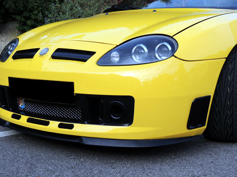 Bringen wird das nichts oder nicht viel, schaden tut es aber auch nicht, nettes Gimmik, aber keine verchromten Ringe am Fronteinlass Dennoch kann man ganz klar die Kreativen unter uns erkennen die sich Gedanken machen und dies auch ausführen. Eine Temperaturmessung kann er nicht machen, die genuteten Bremsscheiben im oberen Bild sind jetzt 5 Jahre alt und wie neu, ein MG Fahrer bremst nicht, das ist der Beweis