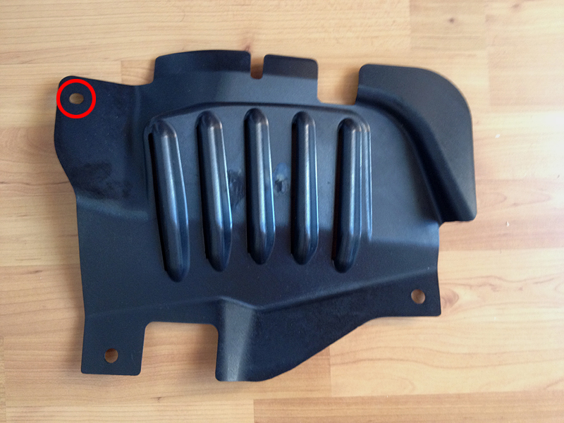 Beim MGF stört nun einerseits, dass die Schraube dort im Weg ist und die Abdeckung wegdrückt. Man möchte auch nicht wirklich die Befestigung eines tragenden Elements durch eine Plastikabdeckung hindurchschrauben, außerdem sitzt dummerweise der Stoßdämpfer genau davor. Andererseits gibt es oben nichts, was die Abdeckung hält, sodass die klappern würde. Ich habe das so gelöst, dass ich die Ecke ausgeschnitten und oben ein neues Loch gebohrt habe. Durch dieses wird dann ein Kabelbinder gesteckt, der die Abdeckung an dem Alu-Knie befestigt. Man könnte natürlich auch ein 4-er Loch in das Aluteil hineinbohren und ein 5-er Gewinde reinschneiden … Ihr wisst schon. Aber so hält es auch bombenfest, und es kann nichts festgammeln, so wie diese andere Schraube von der Filzabdeckung. Dateianhang:
