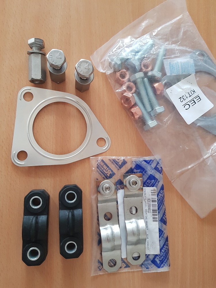 das beiliegende Montagematerial scheint brauchbar. Ich werde dennoch gesondert gekaufte Edelstahlschrauben und "Cat Saver Nuts" von MGMania verwenden. Zusätzlich mache ich die Auspuffgummihalterungen noch in Edelstahl. Dateianhang: