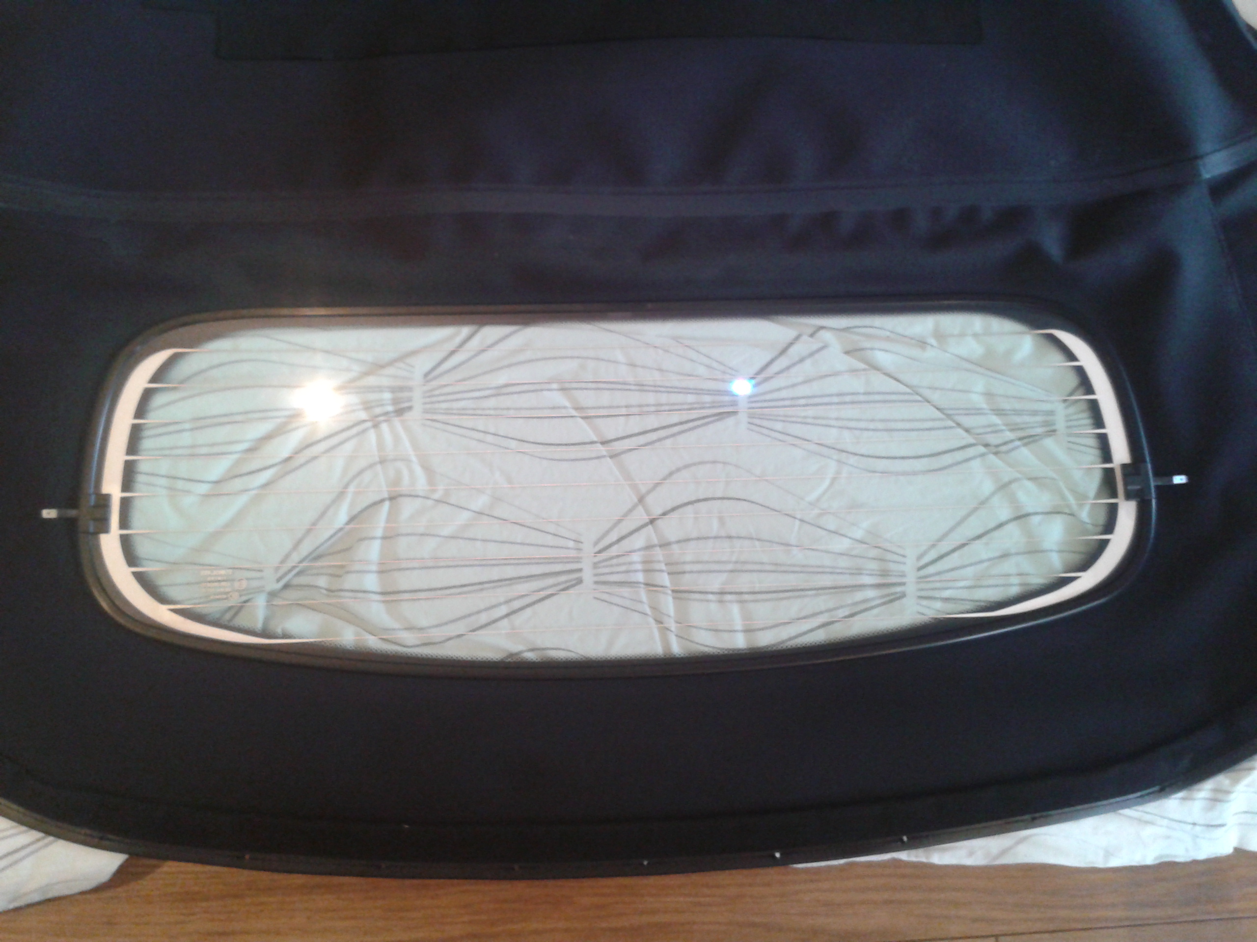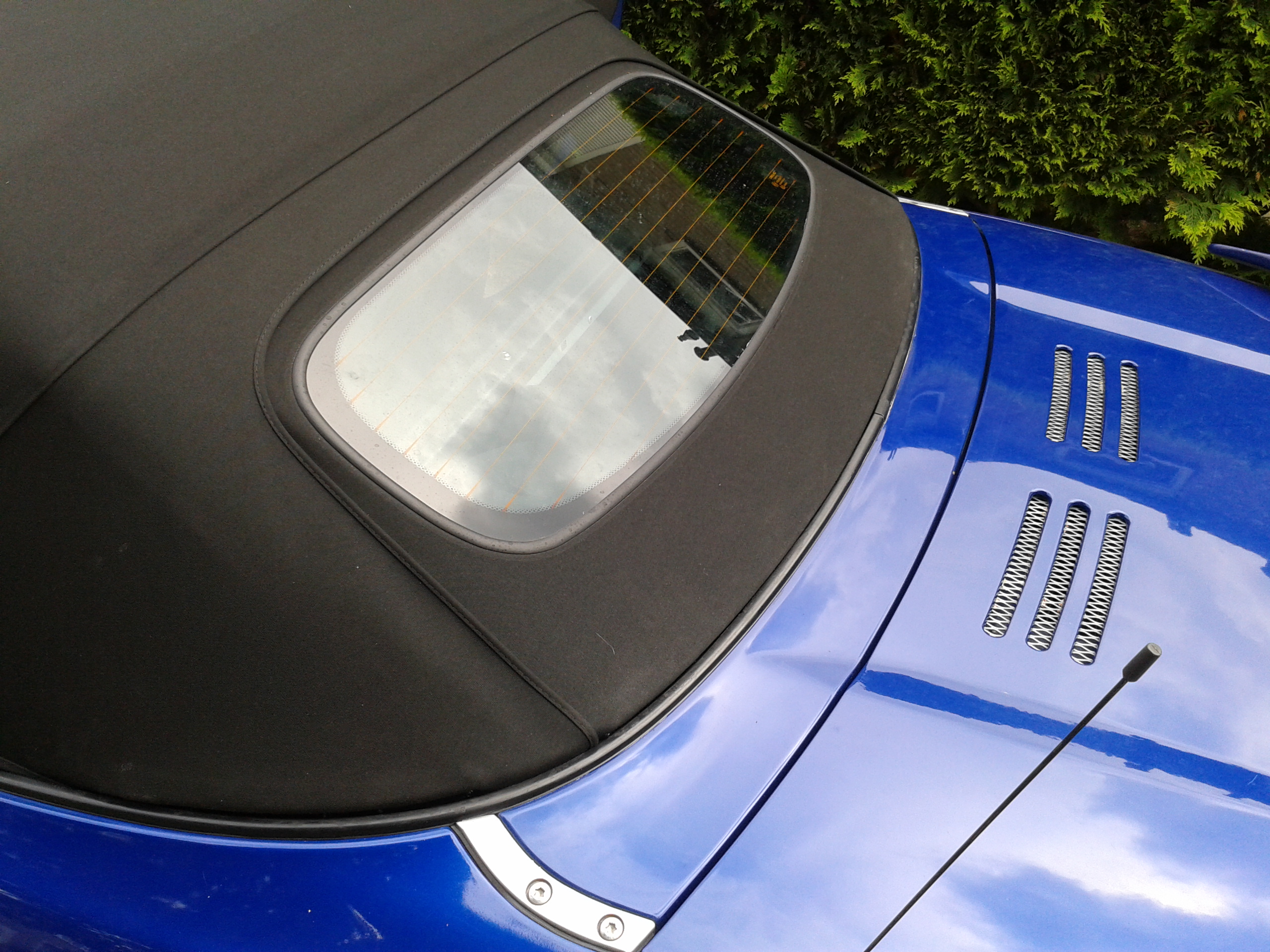 Positiv ist, dass die etwas anders aufgebaut sind als die MG-Rover Variante. Die Scheibe sitzt etwas höher, sodass das Verdeck beim Zusammenfalten untenrum nicht so spack sitzt (wer die BAS-Scheibe verbaut hat, weiß was ich meine). Auch die Verarbeitung ist sehr ordentlich, obwohl die Teile natürlich „Made in China“ sind. Es gibt auch keinen Reißverschluss mehr, der ist nicht nötig. Stattdessen ist das Heckteil rundherum vernäht und zusätzlich innen noch mit einem Gurtband abgefangen, sodass diese Falte links und Rechts von der Scheibe nicht auftritt, wie das bei nachgerüsteten Glas-Heckscheiben meist ist. Kosmetische Sache, aber eben unschön.