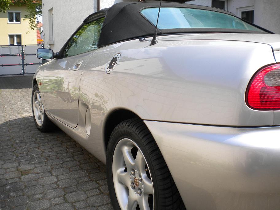 ehemals: MG-TF 135 Cool Blue bj.2004 BAS Glasheckscheibe, Stormwipers Single Wiper Kit, Startknopf, Mittelkonsolenumbau auf doppel-din, edelstahl Kühlwasserrohre, Türteppich gegen Alubleche getauscht