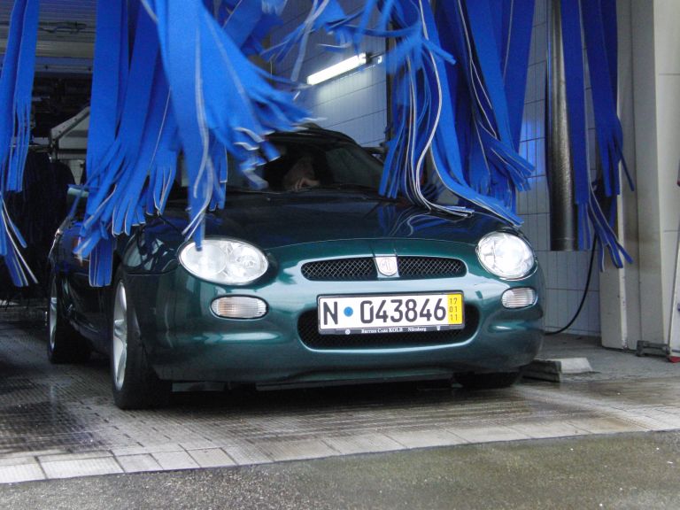 Ich wasche die Diva ausschliesslich per Hand. Mit nem Hochdruckreiniger abspülen damit der Grobe Schmutz unten ist und im Anschluss mit einem Schwam, einem Eimer warmen Wasser+"Shampoo" abreiben. Falls nötig benutze ich noch eine Speziell Knete (erhältlich bei Würth, Bernner, etc) um Insekten und Teer zu entfernen. Das Verdeck wird nur abgespült. Zweimal im Jahr steht das große Programm mit Politur auf dem Plan. Die meisten Waschboxen haben keinen Ölabscheider  , deshalb sind dort auch keine Motorwäschen erlaubt.