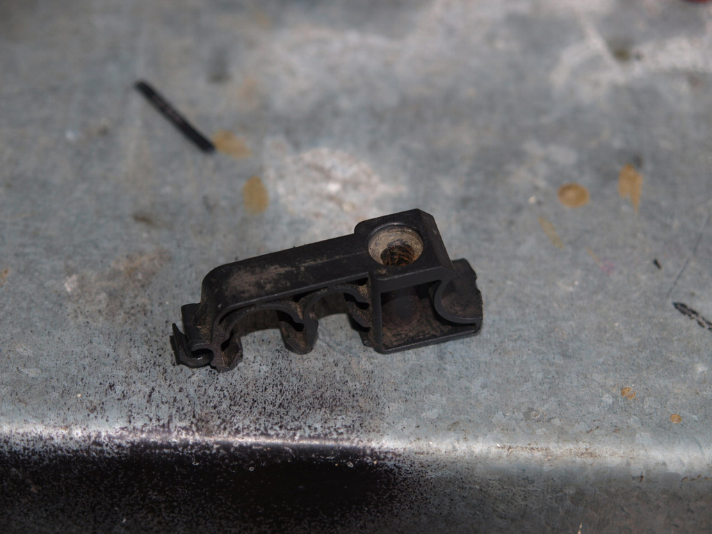 Diese Klammer hier (irgendwann mal von irgendeinem Wagen abgebrochen und liegengeblieben) habe ich dann noch zum Halter für die Leitung zum Bremskraftverstärker und den Gaszug umfunktioniert und an die entsprechende Stelle an der Alubrücke geschraubt. Dateianhang: