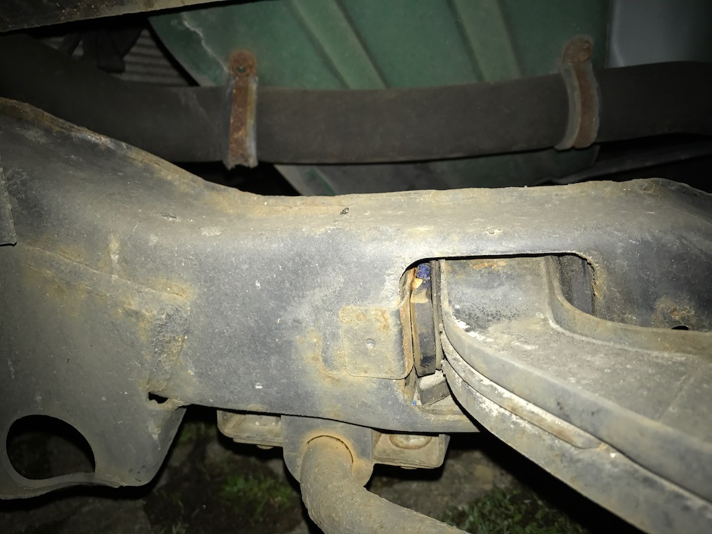 Zuhause hab ich dann mal kurz druntergeguckt und aus der einen Buchse (siehe Bilder) ist ein Stückchen rausgebrochen.