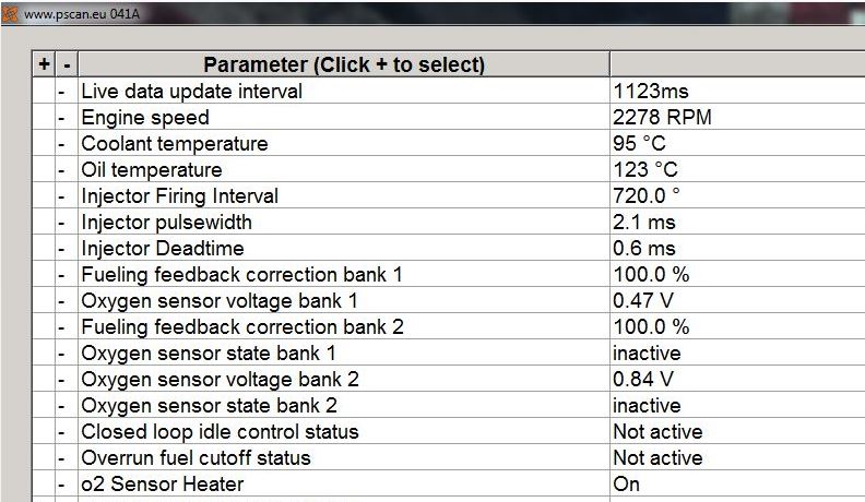 Hier sind verschiedene Screenshots von PScan. Bei diesem Programm gibt es 2 verschiedene Methoden um die Live-Motordaten auszulesen: - ISO Mode - BMW Mode Entsprechend in welchem Modus man ist gibt es verschiedene Parameter die man auslesen kann. Ich habe dies bei warmen Motor im Leerlauf und bei einer Motordrehzahl >2000 gemacht: ISO Modus Leerlauf: Dateianhang: