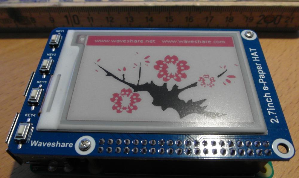 Hier mal ein großes 2.7'' epaper mit 2 Farben. Als Raspberry Pi Aufsatz.