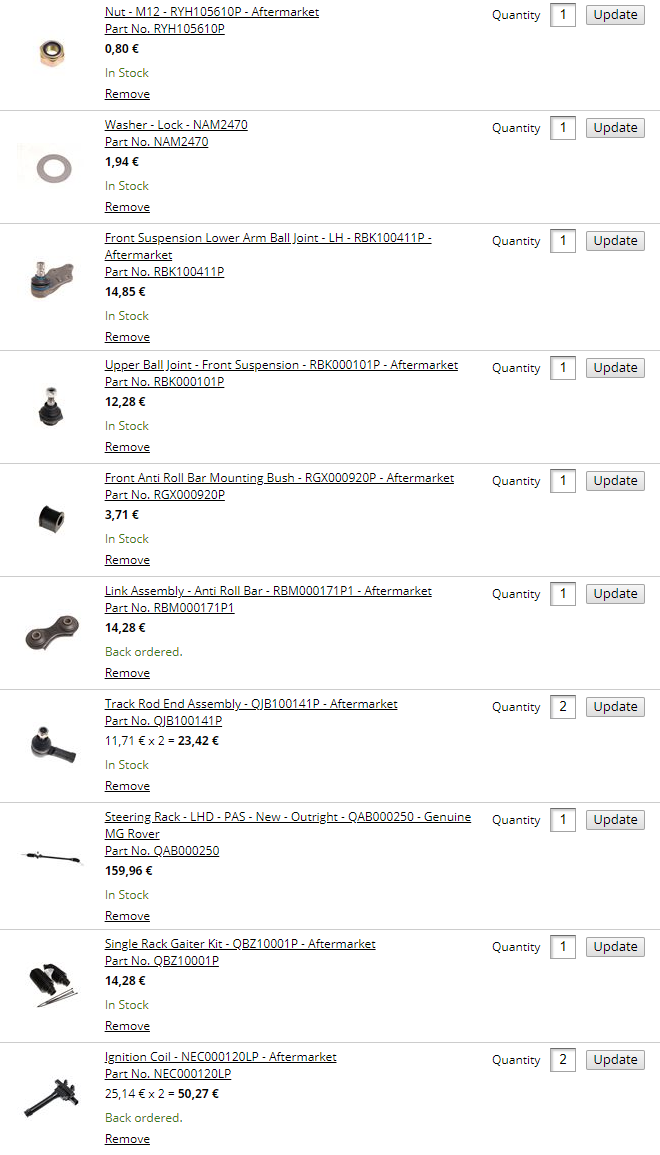 Ok, danke Euch vielmals.  Unglaublich immer wieder in welcher kurzer Zeit einem hier ausführlich geholfen wird. Echt stark ! Da hab ich ja mal was vor. Hab heute versucht den TÜVler zu erreichen, aber nur AB immer. Muss ich morgen mal persönlich vorfahren und nachfragen. Leider war ich nicht direkt dabei, hätte sonst über ne Stunde warten müssen, trotz Termin. Hab mir die Teile mal bei Rimmerbros zusammengesucht. Das Lenkgetriebe wäre die QAB000250? Falls nötig... Manches ist zuviel, dient eher als Merkzettel... Jetzt heissts ab in die Werkstatt und ne Bühne und kontrollieren. Hoffe ich krieg bald die Chance, mag nicht in eine Vertragswerkstatt