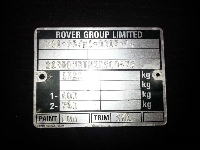 Brauchst die Motornummer auch? SARRDWBTNAD022413 hab ich alles ... wie folgt: VVC 25.3.1997 vom Band gerollt und am gleichen Tag geliefert 23.4.1997 nach D importiert Motornummer 18K4KJ90 470690 CAQ Nightfire Red Pearlescent LQR Teileder Sitze. LHD