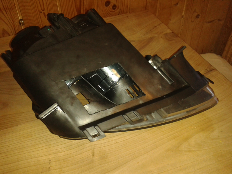Beitragsüberschneidung - ich habe die drei Kreuzschlitzschrauben entfernt, die den kompletten Einsatz bestehend aus Abblend- und Fernlichtprojektor halten. Wie gesagt, an zweie kommt man nicht ohne Winkelversatz ran, die innere hat über die hintere Öffnung gut 30° Versatz, die äußere (etwa in der Mitte des ges. Scheinwerfers) ist durch den ovalen Deckel sichtbar, erfordert aber einen abgewinkelten Dreher. Darum hab ich jeweils ein Loch gebohrt, das in etwa fluchtet.
