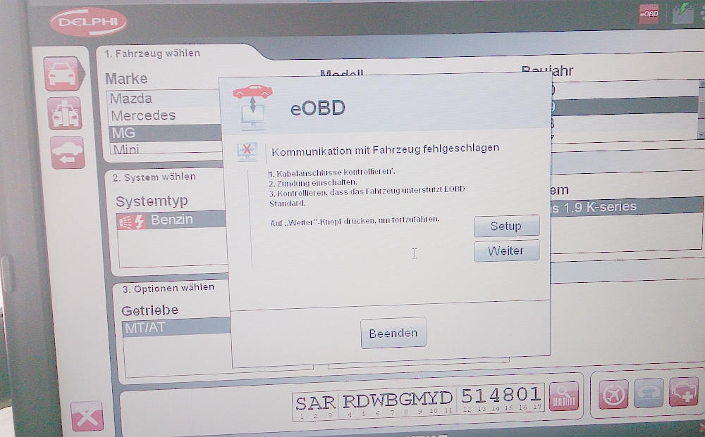 Zwischenzeitlich hatte ich mir in China die Crackversion von CDP+ bestellt, (43 Ocken inkl. Versand per Landweg mit´m Panjewagen). Kam nach zwei Wochen, zollfrei und ließ sich auch anstandslos auf meinem Uraltlappi installieren. Also angestöpselt und gestartet. Die Kommunikation mit dem MG gestaltete sich dann doch etwas aufwändiger. Das Programm erkannte das Fz erst beim vierten oder fünften Versuch, wollt schon abbrechen, als das Hardwareteil plötzlich von Blau auf Grünlicht umschaltete und anfing Klackergeräusche von sich zu geben.