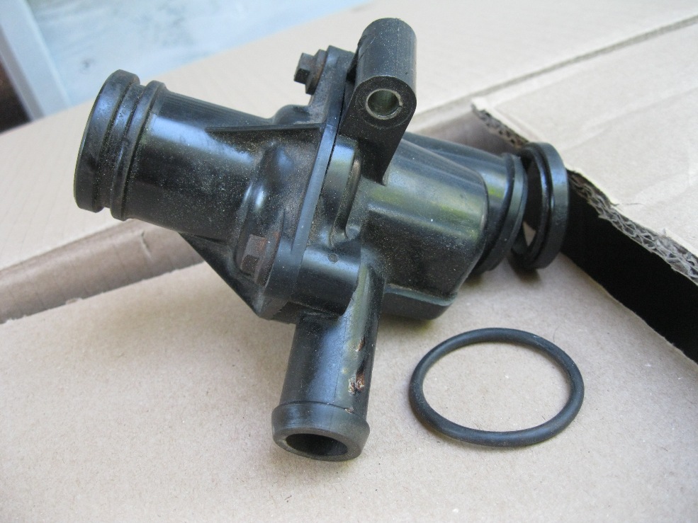So, nun zum Amusement noch ein paar Fotos, zuerst mein Arbeitsplatz im Carport auf zwei Bildern, dann die Sache mit dem Thermostat: Bei der Demontage der Wasserpumpe fiel mir so ein rundes Ding entgegen, sah aus, wie so Klemmdichtungen bei Spülbecken-Ablaufgarnituren. Das wollte ich dann natürlich wieder an Ort und Stelle montieren, ging aber nicht, das fiel durch die Öffnung vom Thermostat nach draußen. Und dann die Erkenntnis, das es sich bei diesem schwarzen Ring um das Ende des Thermostat-Gehäuses handelt Gut, dass ich bereits ein komplett neues da hatte, mit Dichtungen natürlich. Wenn ich mir vorstelle, dass die Wasserpumpe das Ding zu Gries verarbeitet hätte und dann fröhlich im Kühlkreislauf verteilt... Grüße aus TBB Christof