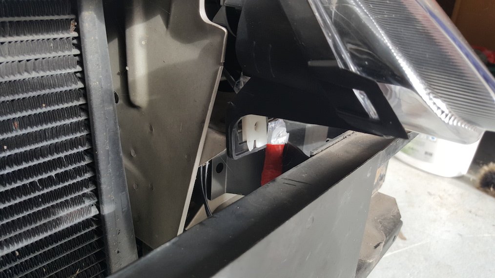 wie ich die Schraubstelle so umbau das es in die einsteckt Lasche passt mit dem richtigen abstand das der Scheinwerfer nicht schief ist