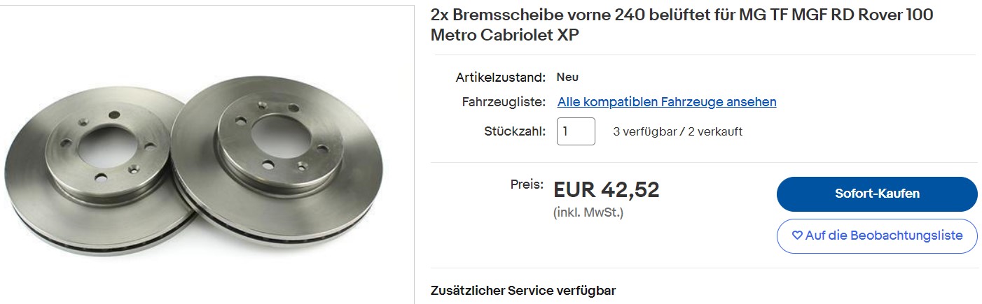 | Betreff des Beitrags: | MGF/TF Front Bremsscheiben Standard 240mm |