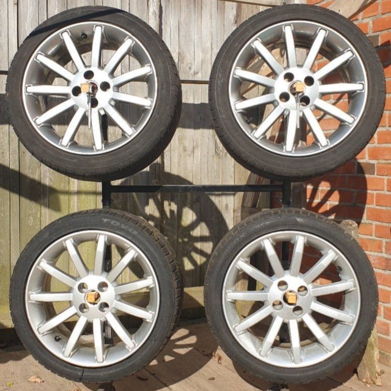 Hallo, biete 4 original MG 11-Spoke 16 Zoll Alufelgen für MG F und MG TF in 7 J x 16 H2e+28 in silber. Die Reifen sind zum Schutz der Felgen noch montiert (vorn Reifengröße 195/45 und hinten Reifengröße 215/40). Bekanntermaßen sind diese Felgen für die große Bremse, 4-Kolben-Bremsanlage AP Racing, geeignet. Die Felgen sind in einem guten Zustand, natürlich nicht perfekt und weisen die üblichen Bordsteinbekanntschaften aus.