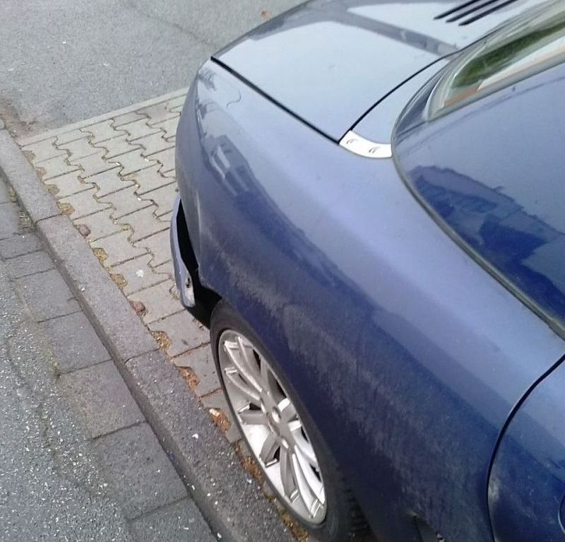 Die Beule im Seitenteil lässt mich nichts gutes erahnen... sie ist quasi von seitlich hinten nach vorne an dem Wagen hängen geblieben.. beim links abbiegen..