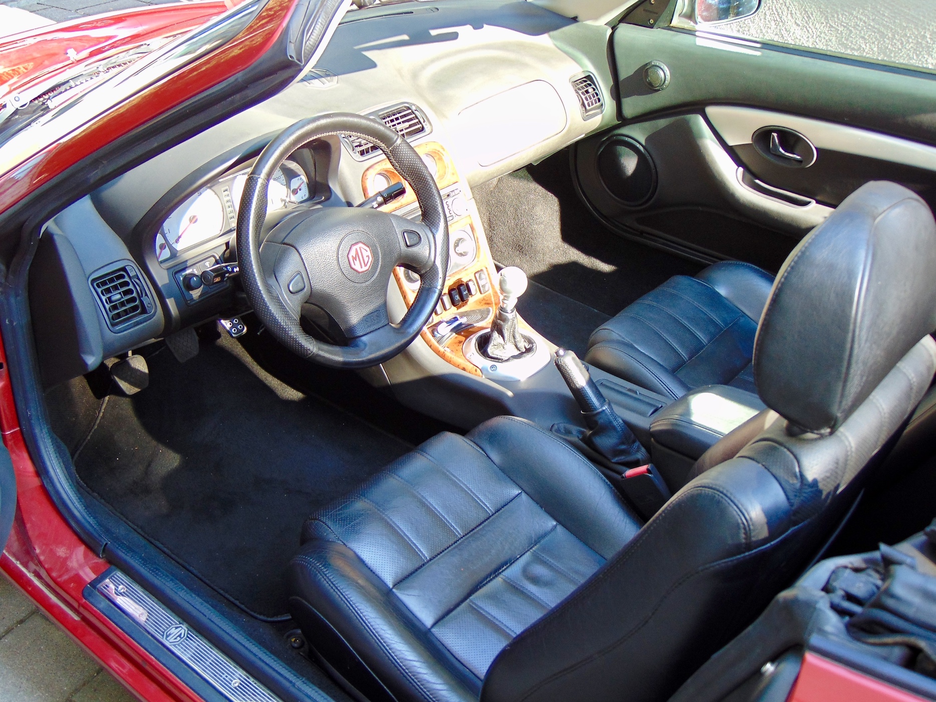 Hallo zusammen, bei der Suche nach einem Cabrio (Zweitwagen!) bin ich vor geraumer Zeit auf den F aufmerksam geworden. Mittlerweile bin ich zwar seit ca. 9 Jahren (hauptberuflich) nicht mehr in der Werkstatt aktiv, aber als KFZ-Meister und ehemaliger Motorsport Mechaniker klappt das doch noch ganz gut. Ein guter Freund von mir betreibt auch eine Werkstatt, deren Räumlichkeiten ich freundlicher Weise nutzen durfte. Von daher hat mich auch der Zusatz "Motor klappert manchmal" beim Kauf im November nicht abgeschreckt. Aber der Reihe nach: Es handelt sich bei dem Wagen um einen 2000er MGF MKII mit guter Ausstattung (Klima, Leder, Alarm). Copperleaf Red Metallic. 50TKM auf der Uhr. Karosserie top, kein Rost. Innen auch nicht allzu verlebt. Ok, Motor klappert... Also erst mal raus mit dem Trumm. Komplett mit der Hinterachse raus. Getriebe demontiert, die Kupplung war schonmal "eher solala". Kopf runter. Bissl verockert an den Laufbuchsen. Nicht schön, wäre aber wohl noch ok gewesen. Der Kopf selber, auch eher nicht so schön und hatte ein paar Macken und war auf der gesamten Fläche wohl "abgeschmirgelt". Ölpumpe raus. 1. großer Span entdeckt. Sch€!$3! In der Ölwanne dann noch ein paar mehr. Der Grund: Kurbelwelle eingelaufen (Leier auch am Block). Von allen möglichen Gründen, warum so ein Motor klappern könnte, ausgerechnet das... Hilft ja alles nix. Neuen Block in England besorgt (Rimmer) und alles was man sonst so braucht (KW, Ölpumpe, Kolbenringe, Laufbuchsen,...). Natürlich mit verstärktem Ölverteiler und den ganzen üblichen Upgrades. Nockenwellen waren auch etwas verockert, also neu! Wenn der Block schon neu ist und der Kopf auch "nicht mehr so schön" war, kommt der halt auch noch neu. "Darauf kommt's jetzt auch nicht mehr an" wurde zu meinem meist ausgesprochenen Satz in der Zeit... Alles zusammengebaut, neue Kupplung rein, PRT mit Silikonschläuchen nachgerüstet und das ganze Trumm wieder rein gepackt. Am Fahrwerk habe ich alles was ausgeschlagen war erneuert und die Schubstreben mit Polybuchsen ausgestattet. Dämpfer neu (Kayaba), Lowering Knuckles verbaut (Wofür ich nun auch ne Pumpe habe. Nur für den Fall, dass mal jemand sowas braucht), AP Bremse vorne, hintere Sättel rot beschichtet, Stahlflex rundum, 16" Eleven Spokes mit 215/40ZR 16 Kumho Ecsta SPT, Scheinwerfer neu verchromen lassen, innere Blenden schwarz lackiert, Verstärker hinter den Sitz gebaut, 4x6 hinten und 6,5" vorne (alles original von außen) und 8qm Dämmmaterial verbaut (Die Tür fällt jetzt eher wie beim RR Phantom ins Schloss  ), original MG Radio aus SAIC Produktion mit MP3, Mittelkonsole in Wurzelholzoptik mittels Wassertransferdruck (der originale Gummibezug sah echt grauenhaft aus) und zu guter Letzt komplett gewienert und alles hübsch sauber gemacht. Freue mich darauf, hier künftig etwas aktiver zu werden. Gruß Andreas