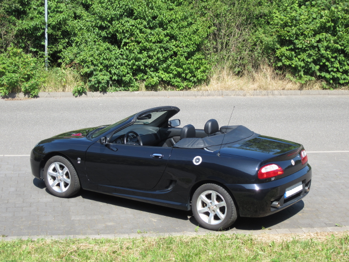So! Nachdem es schon lange gedauert hat bis ich im TF gelandet bin (erstes Mal verliebt 2002), hat es nun auch ein bissl gedauert, bis ich die ordentliche Vorstellung - mit Fotos - hinbekomme Aber hier sind sie! Bisher gabs folgende "Investitionen": - Zahnriemen und Wasserpumpe neu - Inspektion + Ölwechsel - Heizungsregler ausgetauscht - neues Radio (nach passender Optik gekauft) - den in Farbe lackierten Teil des Türgriffs ausgetauscht (beim alten war das Gewindeplastik für die Halteschrauben futsch) Als nächstes folgen soll der Wechsel der Heckscheibe, das alte Ding aus Plastik ist quasi undurchsichtig und eingerissen, freue mich auf Glas  Das Logo vorne ist natürlich auch nicht mehr wirklich fit, vielmehr beschäftigt mich aber die Frage, auf welche 11 Spoke Felgen ich nächstes Frühjahr wechseln will. Silber oder doch schwarz ... ? Wenn jemand Bilder von einem TF in Black Pearl mit den 11 Spoke in schwarz hat, ich freue mich über jede Entscheidungshilfe  Ansonsten: Keine Probleme und MGlücklich.