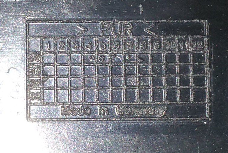 It seems so the part is made out of the Material "PUR" with a tool from April - August 1996. Dateianhang: