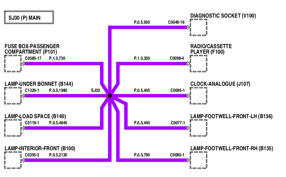 Thorsten_EF hat geschrieben: Kabelbaum Heckklappe ? Schau dir den mal an . Und danach den Roten Kasten hinter den Sicherungen ob da was durchgebrannt ist . Hmmm… Kabelbaum Heckklappe würde aber bei Kurzschluss die F12 killen, bei Abriss des lila Kabels nur die Innenleuchte Kofferraum betreffen. Der rote Kasten betrifft zwar die Innenbeleuchtung (Dimmerfunktion), aber nicht das Radio. Ich habe das Kabel zwischen Sicherungskasten (lila, 1 mm², 73 cm lang) und dem Spleiß zu den verschiedenen Lampen im Verdacht, da hängen auch Radio, Uhr und die Diagnosebuchse dran. Wenn das alles ausgefallen ist und die Sicherung drin ist, dann kann es nur die Verbindung sein. Dateianhang: