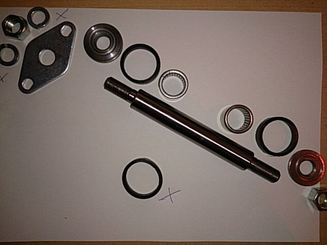 Hab die Welle jetzt mal so angeordnet wie ich sie.auch montieren würde. jetzt hab ich allerdings nen 3. Gummi dabei, sowie 2 kleine unterlegscheiben. Hab's mal mit x markiert. Die.interlegscheiben würde ich oben anbringen. allerdings keine Ahnung wo der Dritte Gummi hinkommen könnte