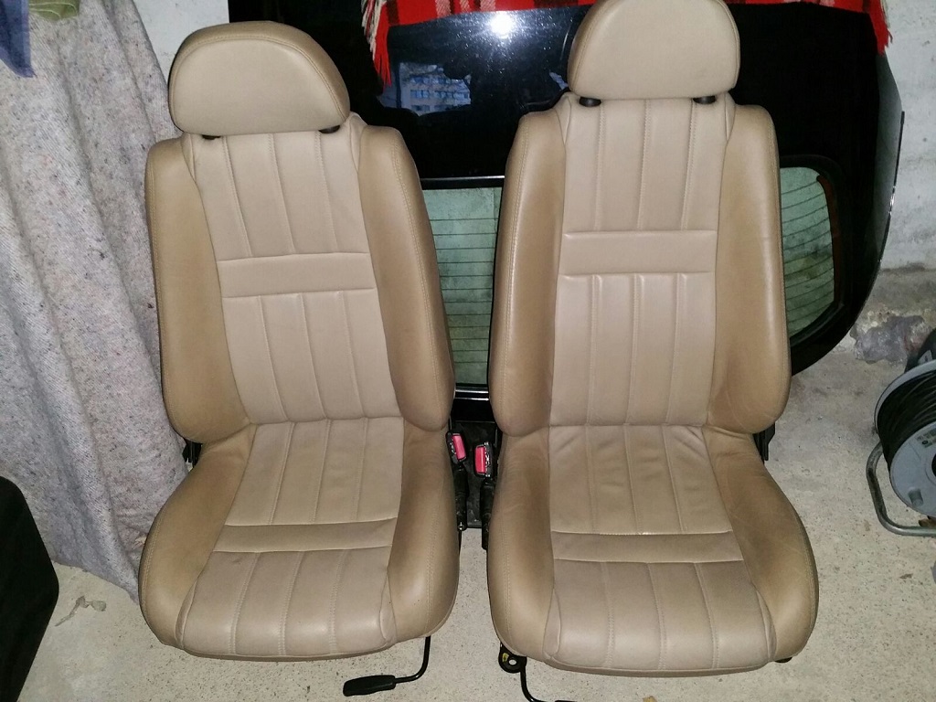 Die verbesserte sportliche Form und schön hell. Naja. Mit der Ausstattung habe ich schon nen guten Wurf gemacht. Nicht nur das es eine seltene "Light Tan" "SAV" Farbe ist, auch sind alle Teile aus einem Schlachter mit 40Tkm Lautleistung in einem neuwertigen Zustand. Gut ich habe drei Tage mit Meguiar's APC 1:4 und 1:10 gekämpft um den moosartigen Befall zu entfernen. Hat aber tadellos geklappt. Schmutz ist weg und kommt dank Vinylex auch nicht wieder. Na mal sehen.