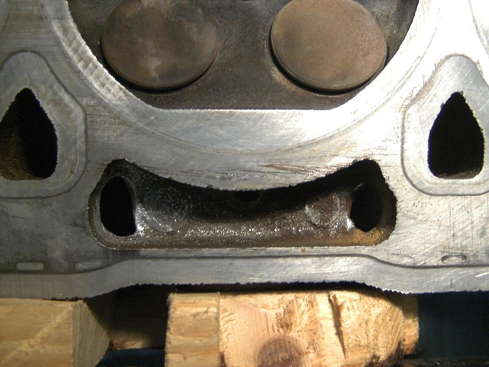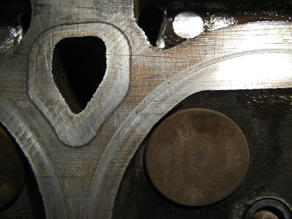 Hola, so, Kopp ist einigermaßen sauber. Die Guß- (= Plastikansaugkanal-zusammenfüg-Kuststoffschweiß-) reste waren mit dem Skalpell recht einfach wegzukriegen; übrig ist nur noch eine kleine, nicht entfernbare Stufe, der Formversatz wo die Ansaugömmeshälften verschweißt sind. Auf dieser hochfeinleckeren Website http://kengine.dvapower.com/ ist noch ein Hinweis auf die Wasserkanäle im Kopf. Da mir eine verbesserte Durchströmung grade auf der Abgasseite recht ist, hab´ich mal angefangen die Grate innen wegzudremeln. Die Kratzer in der Oberfläche sind nicht von mir, sondern von der Schweizer Werkstatt, die den ersten HGF repariert hat... Gruß Linus